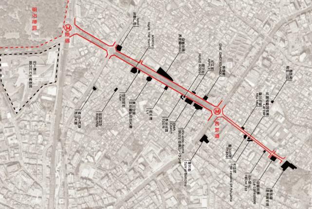 东京表参道从表参道站延伸至明治神宫,约1.1公里长的轴线串联起林荫大道、背街商业、神社绿地与地下空间,通过多层步行系统整合了丹下健三、安藤忠雄、隈研吾、妹岛和世等建筑大师设计的20余座作品,形成集顶级时尚、先锋建筑、在地文化与纵深体验于一体的全球罕见都市长廊 ©网络