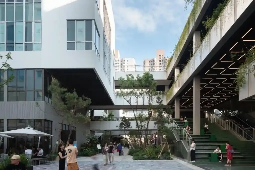 在空间设计方面,上生新所二期采用"聚落魔方"理念,通过架空、连廊、悬挑等方式打造多样化的花园式建筑环境,并引入大量绿植,形成"都市小森林"氛围。这种设计既满足现代人对自然的需求,又创造了适合拍照打卡的场景,体现了"场景理论"的应用。