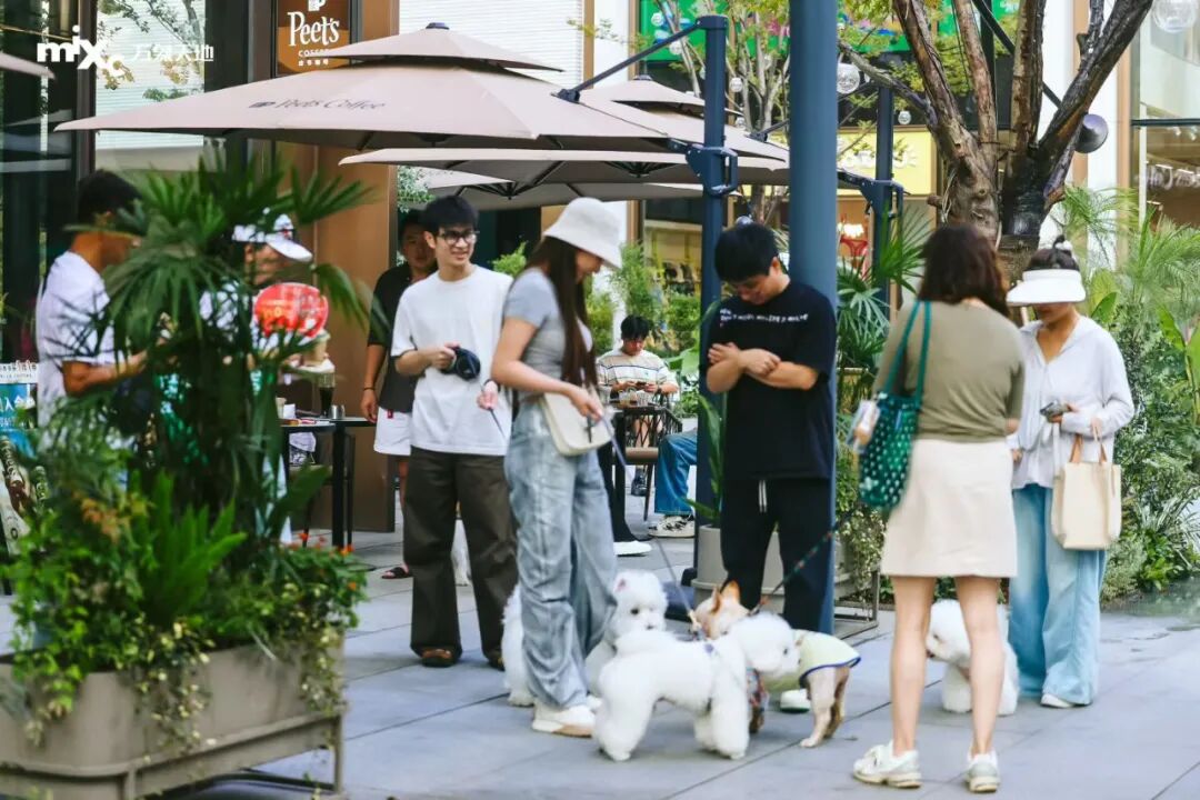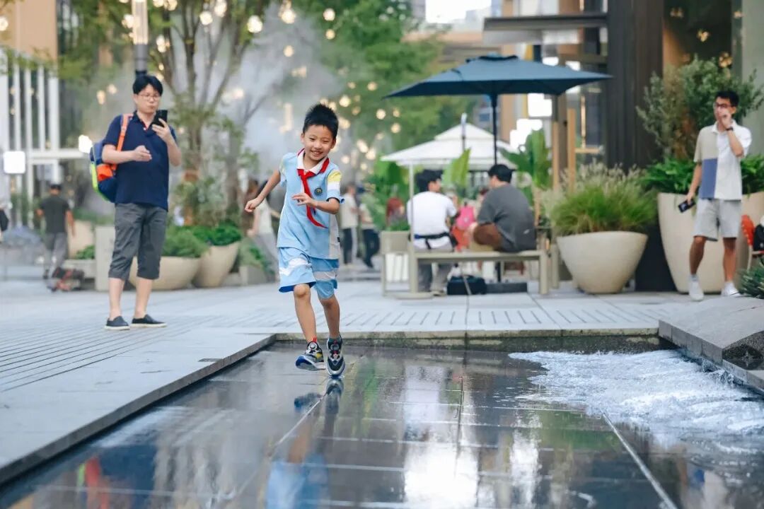 因为兼容亲子友好、宠物友好等场景,街区式商业在这个假期尤其受欢迎,也持续带动亲子家庭和萌宠家庭的消费。和亚奥万象天地几乎同期开业的秦望水街也拥有超高人气,以“滨水美学+首店集群+文化IP”的复合模式,将购物、餐饮、娱乐与艺术融为一体。