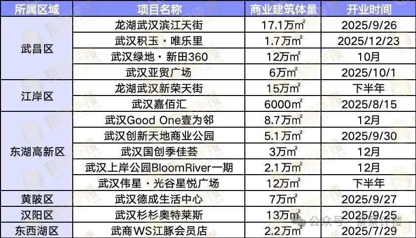 根据戴德梁行数据,下半年将新增 33.3 万平方米优质零售空间,重点分布于武昌滨江、光谷、后湖等新兴区域。