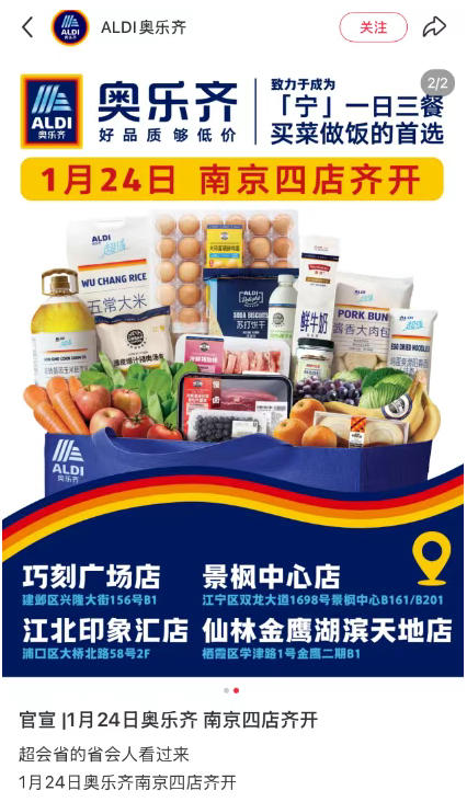 此外,奥乐齐还有鼓楼华贸中心店、珠江路金鹰店、龙江新城市广场店也将陆续开业。