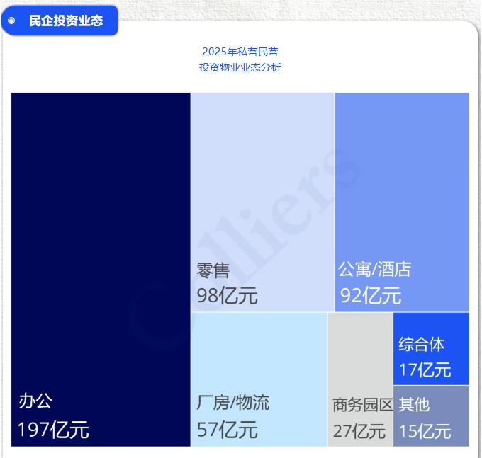 • 2025年,办公是民企投资金额最大的业态,绝大多数成交的办公项目都在北上广深一线城市。