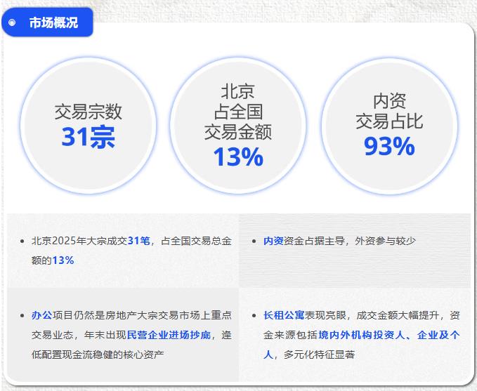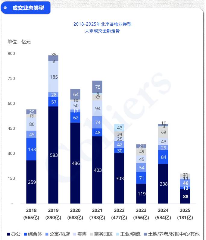 2025年,北京房地产大宗交易总金额为181亿元,是近些年最低点,市场整体观望情绪浓厚。