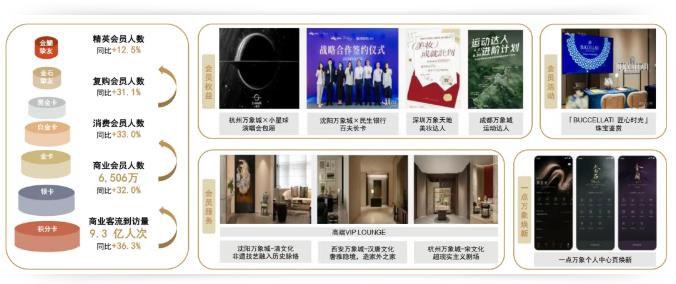 我们认为购物中心运营商将在传统项目深化运营、新项目场景模式创新等方面不断进步以提升总体零售额。其中深化运营具体举措包括:持续调改以优化品牌组合,例如华润万象生活2024年在营项目招调量30%;积极营造商业空间氛围以吸引客流,例如恒隆系高端商场持续加强体验与餐饮等业态;多渠道加强会员黏性以挖潜其消费潜力,例如华润万象生活1H25通过扩充多项会员权益、举办万余场会员活动、多项目升级VIP LOUNGE等手段促进期末消费及复购会员人数均同比增长超30%。此外,新项目的场景和模式创新有望进一步提振外延增长动能,例如华润万象生活依靠城市资源、结合本地生活形态所创新的大运天地、绍兴天地等系列产品持续获得成功[5]。