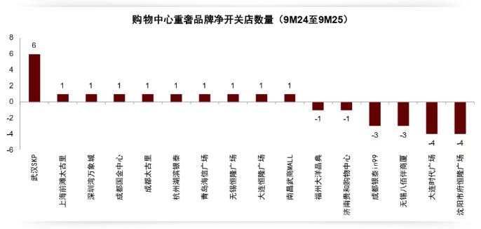 图表23:奢侈品牌净新开店项目多为头部购物中心,净关店项目多为百货或老场