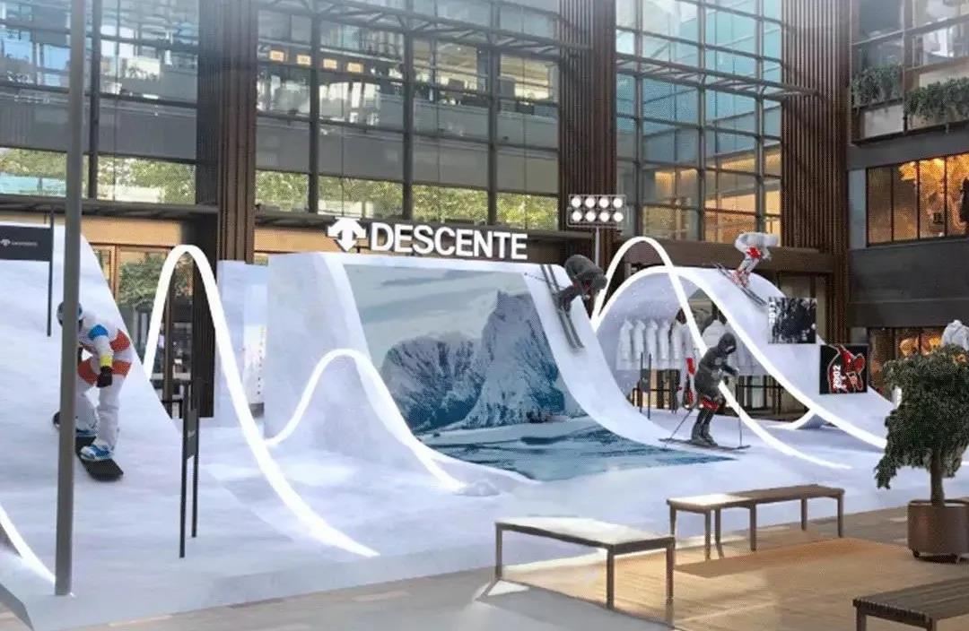 例如,自2021年11月起,DESCENTE迪桑特「精准过人」滑雪精品展全国巡展首站亮相沈阳万象城后,相继落地北京国贸商城、天津万象城、上海新天地时尚购物中心、成都远洋太古里、深圳万象天地等城市标杆购物中心,通过极具吸睛效果的“高级道”滑雪雕塑,成为热门打卡点。
