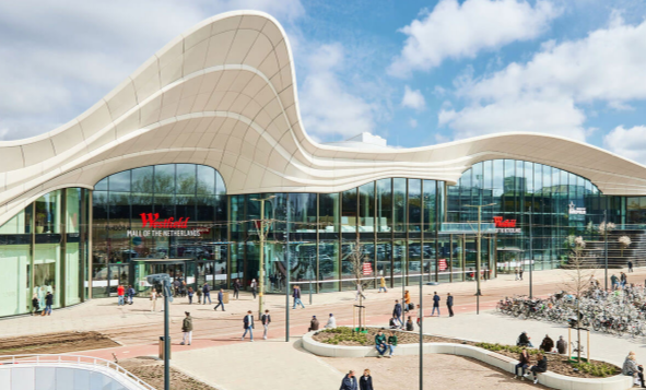 Westfield Mallof The Netherlands是荷兰最大的购物中心,占地11.7万㎡。其在建筑外观上特立独行,不是一板一眼的方形盒子,以薄纱为灵感,用流动的线条勾勒空间,使层次结构更分明,打造出更年轻、更浪漫的艺术空间。在内部的中央广场上方还有一扇巨大的中央天窗,在逛街时也能感受到阳光的照射,“假装”在户外增加了趣味性、与户外的接触感。