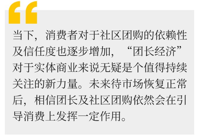 相较于各个大型商场,我们看到社区商业体现出了更强的应变能力,由于社区商业选址多依托周边聚集的社区,保证了其客流的稳定性,加之提供的商品多可满足人们疫情期间对于刚需、高效、及时、便捷的消费需求,相对受到疫情的影响较小。同时,不少社区商业主体及商家也抓住此次疫情的特殊时期,对运营做出调整,积极整合各商户资源,确保各保障性物资的供应,并组织发起团购,加强同消费者间的联通,为日后客户留存与转化打下基础。