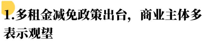 2022年3月以来,为更好更快实现社会面清零,上海全市开启了长时间封控模式,为助力实体企业共度疫情难关,上海市发布了《上海市全力抗疫情助企业促发展的若干政策措施》、《上海市国有企业减免小微企业和个体工商户房屋租金实施细则》及《关于促进服务业领域困难行业恢复发展的若干政策》等各项相关政策。其中明确表明,针对承租国企物业的小微企业与个体工商户实施房租减免,最长可达6个月,以此加强对商业地产承租人的保护力度。