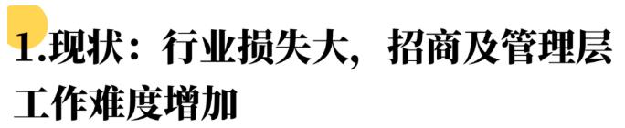 目前,国内多地疫情反复,造成实体商业损失严重。在品牌陆续关店闭店、品牌方拓店谨慎的情况下,也加大了各商业主体招商工作人员的招商难度,既要稳定已签约商户,又要不断挖掘接洽新的可落地性品牌以便及时应对品牌更替的问题,这对招商人员无疑是场重大考验。
