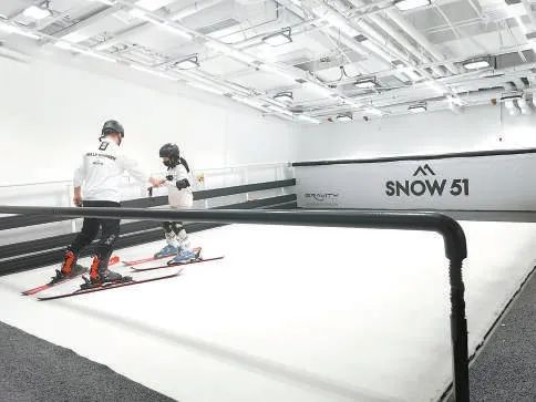 除了科技体验,滑雪爱好者也能打卡全新概念体验店。北京冬奥会期间,SOLOX·SNOW51北京首店在国贸商城亮相,店里集结了滑雪、露营、简餐、运动服等多种业态,让更多人在繁华的大都市中高效、专业地学会滑雪。