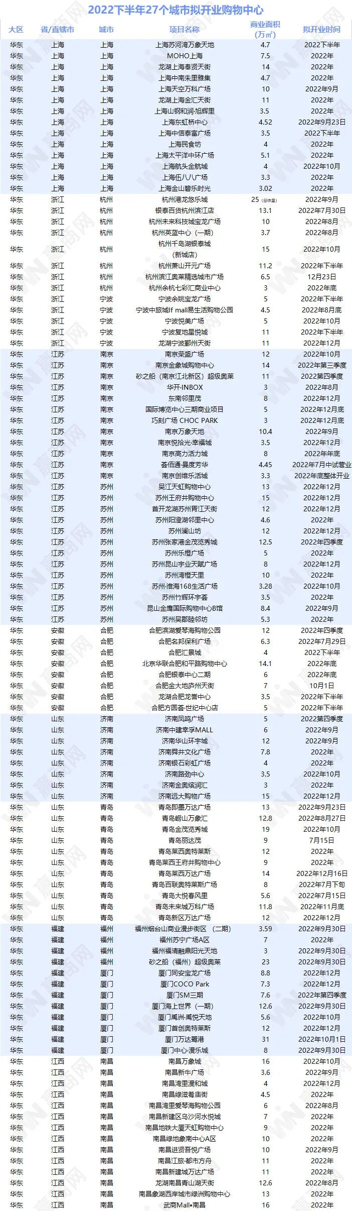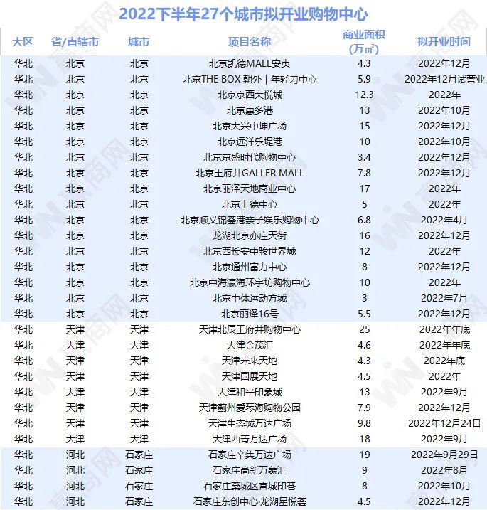 北京:下半年拟开业中,多个大体量项目,其中10个商业体量在10万平方米及以上,凯德、大悦城、远洋、中海、龙湖、中海、王府井等房企巨头项目争奇斗艳。