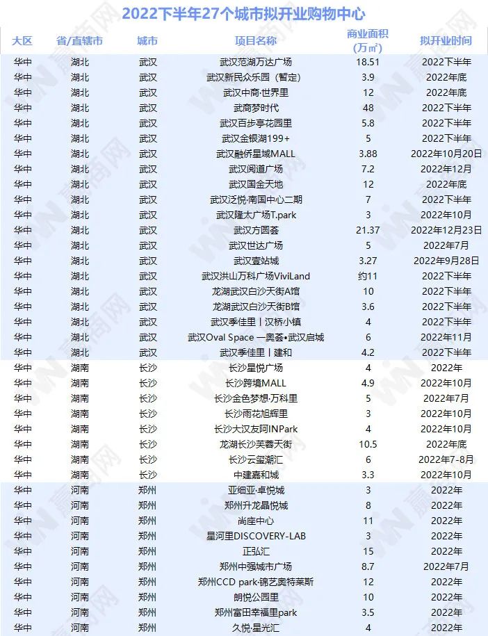 2022上半年,因为多地反复的疫情影响,购物中心开业也深受影响,尤其是2、3、4月份开业量严重受挫,导致多个项目延期至下半年甚至2023年开业。依然充满不确定性的下半年,商业项目开业情况会如何?赢商网特别盘点2022年下半年拟开业项目,供行业参考。