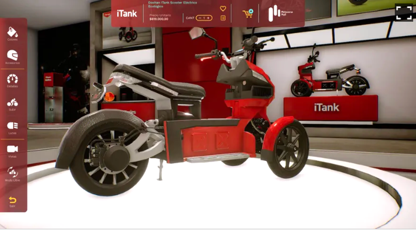 介绍,借助数字孪生技术,所有实物商品都1比1复刻成虚拟商品,如果您想买一辆摩托车,不仅可以多角度观察它,还可以测试车灯、喇叭,甚至可以发现在实体店都无法注意到的细节。同时,虚拟销售人员还会提供各种购买建议,这是一种完全实时的互动购物体验。