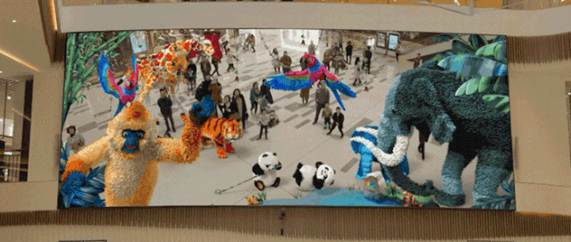 成都仁和新城的中庭成为了消费者打卡的圣地,这里有一块特殊的LED大屏,消费者可以跟屏幕里的动画进行实时互动。