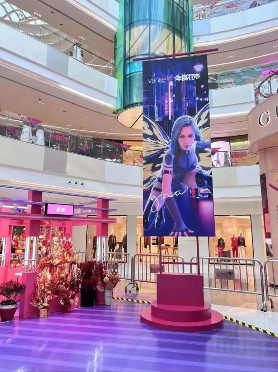 上海七宝万科广场在自创新春IP活动——第六届年宵花市中,联手虚拟偶像GINA,打造了首个“商业地产+元宇宙+AI数字虚拟偶像”的线下场景。