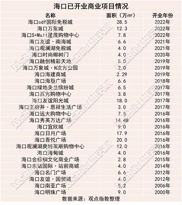 首先是商业竞争环境方面,海口与国内其他城市的商业基础有较大差距。据观点指数统计,2015年以前,海口仅有百货商场和少数的几个购物中心,且项目开发周期较长。