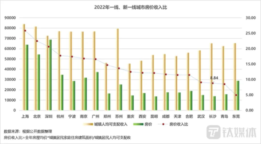 (1)人均可支配收入:长沙人均可支配收入不是全国最高的,房价也不是全国最低的,但房价收入比在19个城市中排名倒数第三,是全国真正的净收入高、居民手里拿到钱多的一个城市。居民的收入不用很大比例去偿还贷款,有钱去消费。