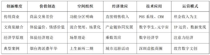 面对需求侧的深刻变革,商业空间的供给侧也经历了根本性的创新与重构。文商旅融合并非简单的业态叠加,而是基于体验经济、场景理论和乘数效应的系统性改变。这种创新不仅改变了商业空间的外在形式,更重塑了其价值和运营方式。通过分析供给侧的关键创新,可以更好理解文商旅融合成为趋势的原因。