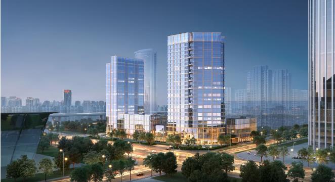 新打造的置地·栢悦广场,约8.5万方体量,规划为百米地标写字楼与独栋资产组合,包含两座百米地标、五栋临街独栋,其中E/F座规划为独栋商业。