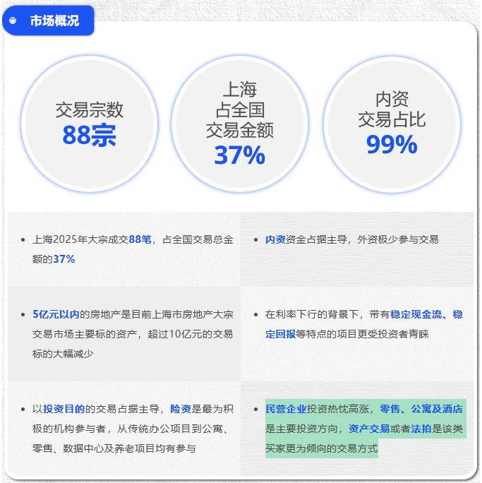 2025年,上海房地产大宗交易总金额近499亿元,成交量进一步萎缩,成交金额是近些年低点,但市场仍保持足够的活跃度。