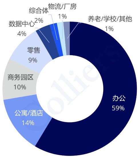 • 其次分别为公寓/酒店、零售、物流/厂房和商务园区等业态。
