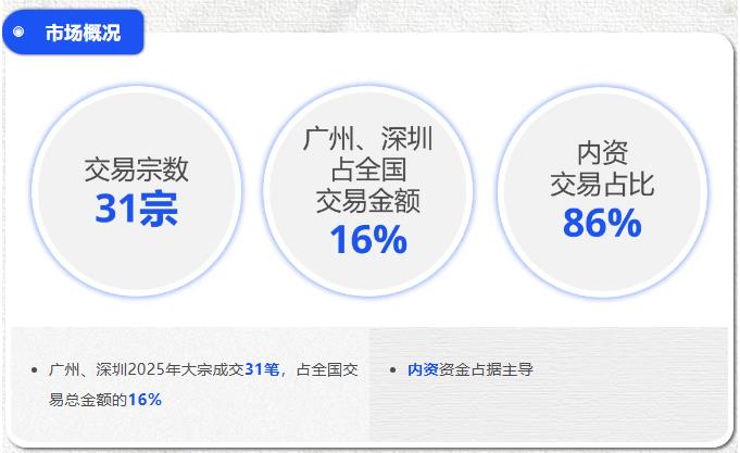 2025年,广州、深圳商业地产大宗交易金额约220亿元,投资人整体仍然比较谨慎,希望寻找高回报、高性价比的物业。
