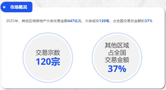 2025年,华东仍然是中国房地产大宗交易市场最为活跃的区域,占据了约全国50%的成交金额;华南成交金额略高于华北。