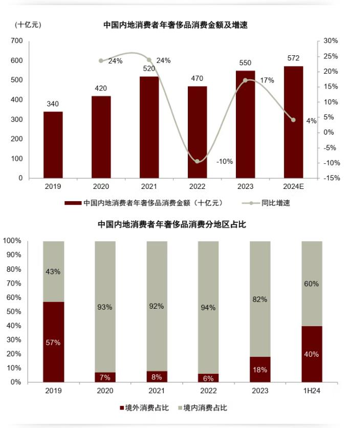 资料来源:BCG、TMI《中国奢侈品市场洞察报告2024年版》,中金公司研究部