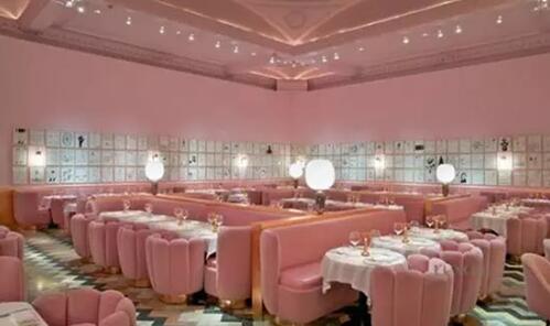 The Gallery的设计,由著名室内设计师India Mahdavi 担纲。她将知名艺术家David Shrigley239副新创作的作品挂满整个房间,浓郁的艺术气息有如The Gallery的名字一般。此外,India Mahdavi 创作了一个Laduree(法国知名马卡龙品牌)式的粉色背景,搭配天鹅绒材质的定制沙发,构建了舒缓、轻盈而又惊艳的内部氛围。