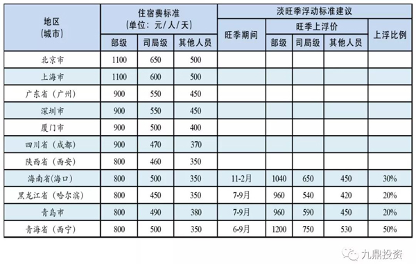 八项规定出台后,财政部于2014年1月公布实施《中央和国家机关差旅费管理办法》,文件适用于中央和国家机关,以及参照公务员法管理的事业单位,同时也是各级政府机关、事业单位、国企制定出差标准的重要参照。该办法中《中央和国家机关差旅住宿费和伙食补助费标准表》针对各省制定了出差住宿的标准,省内实行统一价格。针对执行中遇到的问题,2016年5月调整了《中央和国家机关工作人员赴地方差旅住宿费标准明细表》,大幅提高了重点热门城市的住宿费标准,并对旅游热门城市实行淡旺季价格。新住宿标准的价格区间与各地中端酒店的定价基本吻合。这一标准不但在国家机关内部适用,也是地方机关、事业单位及央企的差旅参考标准。