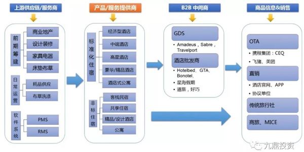 酒店处于大住宿产业的中心位置,直接面向终端消费者。由于酒店产品的复杂性,酒店上游有包括商业地产、家具、建材、装修公司、设计公司等多种不同的供应商,这些供应商大多处于完全竞争市场,酒店有一定的议价能力,酒店的连锁规模越大,议价能力越高,从而产生规模优势。