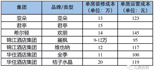 从前期的装修成本和后期运营成本来看,与收入情况相匹配,独立中端酒店品牌和外资中端酒店品牌均高于经济连锁集团旗下的中端酒店品牌。其中,亚朵由于标准化程度相对较高,成本略低于君亭和欢朋等品牌。