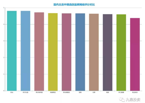 在网络评分中,根据酒店产权网对10个品牌233家酒店的调研,亚朵酒店与桔子水晶(含桔子精选)酒店在保留两位小数点后,评分同位4.81分(满分5 分),代表了消费者对两个品牌具有同样的认可程度。在此项评分中,两家酒店均为第一名,第二名为希尔顿欢朋酒店4.72分、如家精选4.67分、维也纳国际(含维也纳、维纳斯皇家)4.66分、丽枫4.66分、全季4.64分、和颐4.61分、开元漫居4.6分和智选假日4.38分。