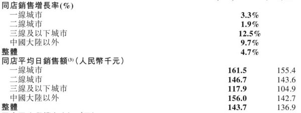 ◎ 可以看出三线及以下城市同店销售增长较快。