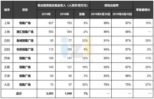 根据大悦城7月发布的“截至二零一九年六月三十日止六个月之未经审核营运数据”中显示,成都大悦城、沈阳大悦城、天津南开大悦城、烟台大悦城、北京西单大悦城的平均租金单价的提升都在5%及以上。