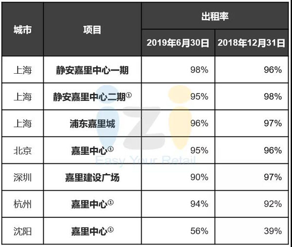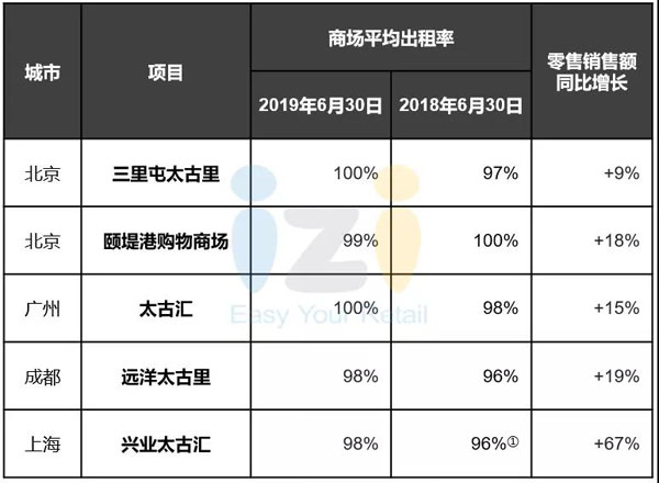 注:① 上海兴业太古汇的出租率包括划给已签署意向书的准租户的楼面。