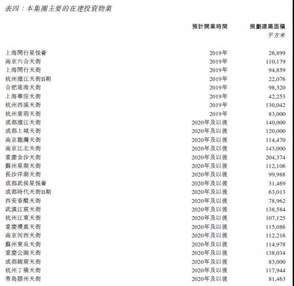 今年7月26日,上海南闵行马桥板块的闵行星悦荟开业,商业面积4.5万㎡。此外,南京六合天街、杭州西溪天街等也计划于今年年内开业。集团另有大量项目在筹备中,具体见下表: