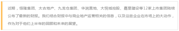 重庆国金中心商场部分截至6月底,出租率达99%;成都时代·奥特莱斯零售销售额于期内录得13%的增长;长沙时代·奥特莱斯零售销售额录得17%的增长。