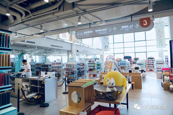 从体验上看,极宠家是以场景化为主,适应当前年轻人热爱“打卡”、“拍照”,喜欢在享受中完成购物的特点,门店内的设计尽可能地激发和满足宠物主需求,包括看书、喝咖啡、闲逛、喂养宠物等。