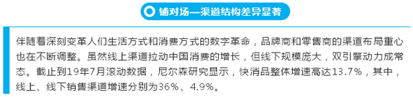 随城市梯队的下沉,渠道结构差异显著。头部黄金50城在发展便利店渠道具有明显优势,尼尔森报告显示,头部城市便利店数量达30.2%,远高于腰部力量城的15.6%;便利店快消品销量占比为10.8%,同样高于腰部的3.5%。