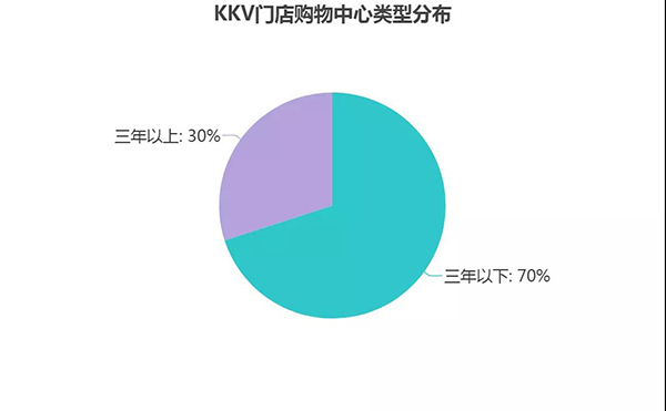 新兴购物中心,占比70%。这类购物中心,通常定位年轻、时尚,与KKV原生品牌基调契合。对于特别新的购物中心,KKV通常选在购物中心同日或同期、节假日开业,获得“热场子”效应,叠加KKV自身品牌效应,获得双重流量加持。老项目,占比30%。这类购物中心,通常有空间、业态老化等问。面对新兴购物中心的竞争挤压,很多老购物中心都倾向于引进KKV这类新兴、跨界、年轻的品牌,吸引年轻客群。赢商网发现,KKV在今年十一进驻了北京悦荟万科广场(开业于2013年),已成为该项目独特亮眼的人气打卡点。据了解,未来KKV还会有针对性地进驻类似老旧商业项目,活化原有商业底蕴。