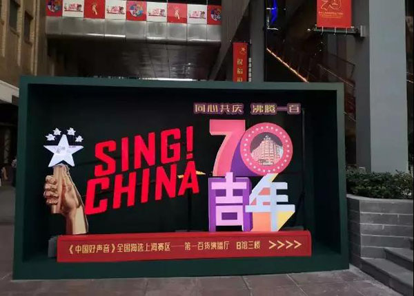 上海第一百货商业中心:《中国好声音》音乐年代展。富有年代感的黑胶唱片、CD、磁带、音响、收音机、耳机等等依次陈列着,以音乐为主线,用一个个的音乐老故事,诉说着时代的变化。