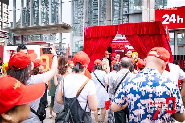 深圳皇庭广场:皇庭广场以中国传统国潮文化为主,在项目G层开展国潮世市集,包含国潮美食、精致文创、潮玩乐队show等。除了音乐、逛吃、打卡,皇庭广场的各个角落,也同时挂上了一面面五星红旗,营造节日氛围。